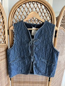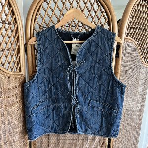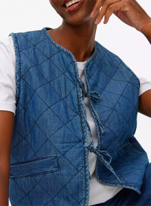 Tu Denim Look Tie-Front Quilted Waistcoat
